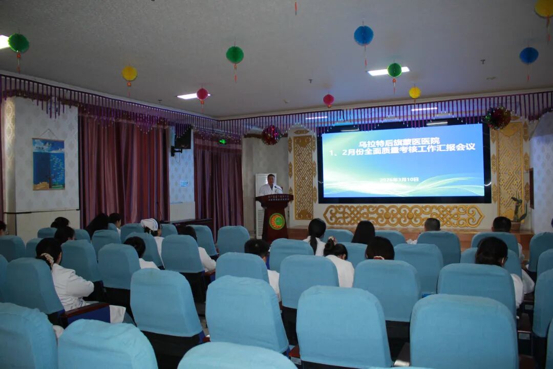 为持续优化医疗服务水平,保障患者安全与健康,乌拉特后旗蒙医医院于2026年3月10日下午组织召开了1、2月份全面质量考核工作汇报会议,医院全体职工参加了本次会议。